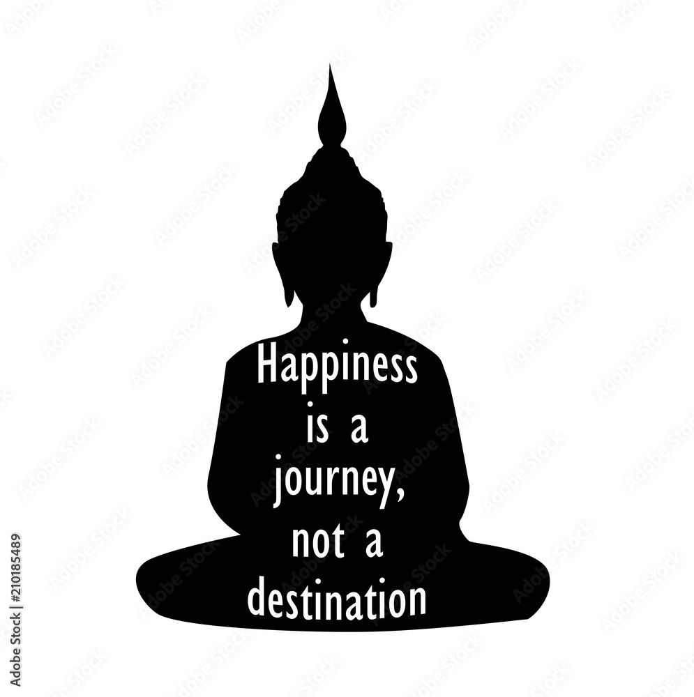 Silhouette of Buddha with inspirational quote, “Happiness is a